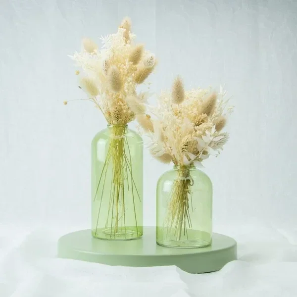 Met droogbloemen.